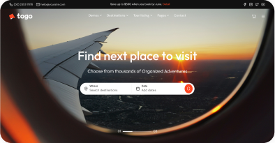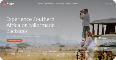 Agencies, tour operators looking to create a professional travel marketplace or directory can benefit from the Togo theme.