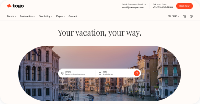 Togo – Travel & Tour Booking WordPress Theme is a modern and easy-to-use theme for travel agencies and tour operators. It offers powerful booking features, customizable itineraries, seasonal pricing, and WooCommerce support—perfect for creating a professional tour booking website.